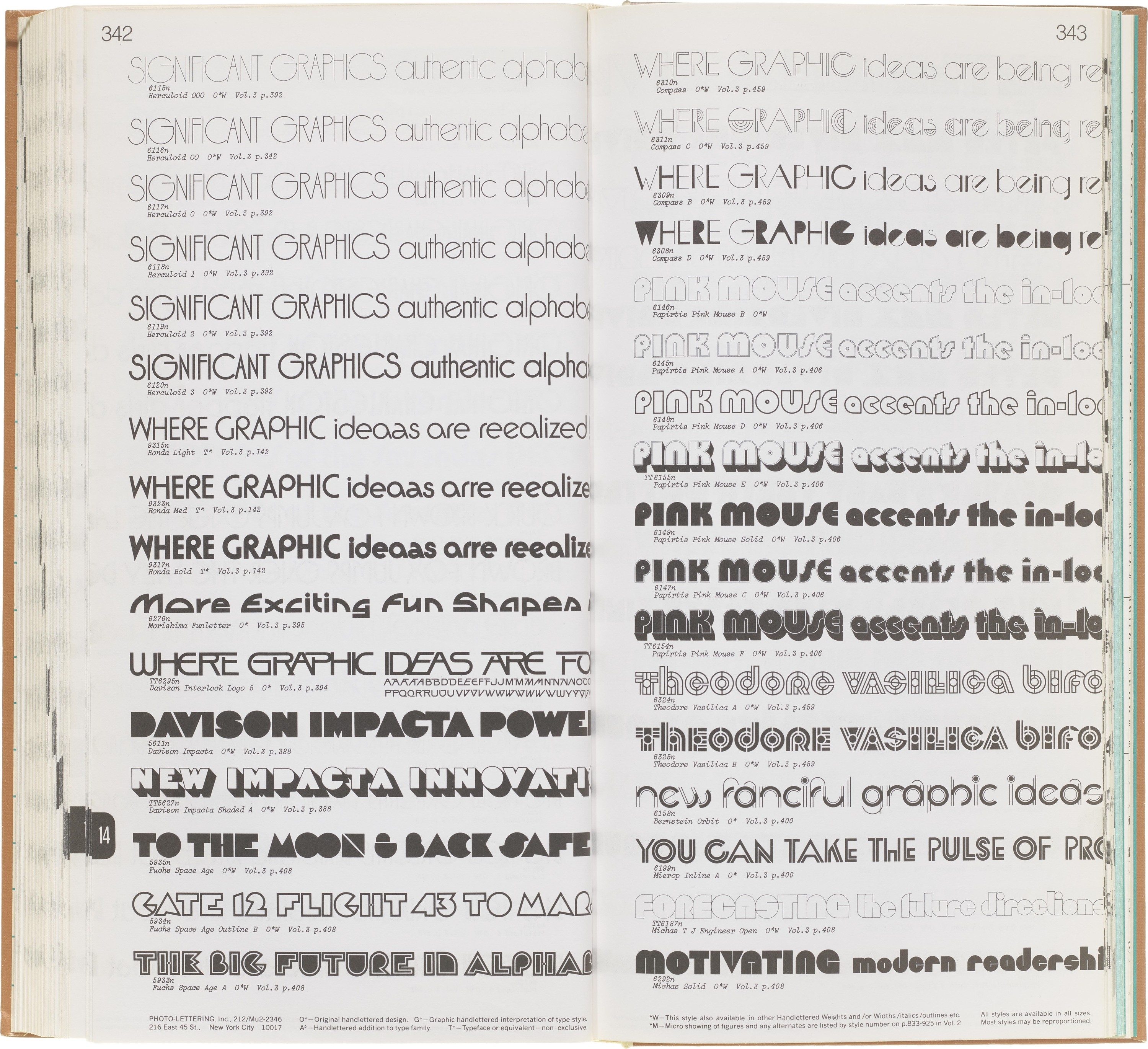 While Babyteeth is probably the most well known version of this style, it was not the first and definitely not the only iteration of this blocky, counterless typographic style. As I was looking through Photo-Lettering's One Line Manual of Styles I found a handful of styles that all play with this same idea.