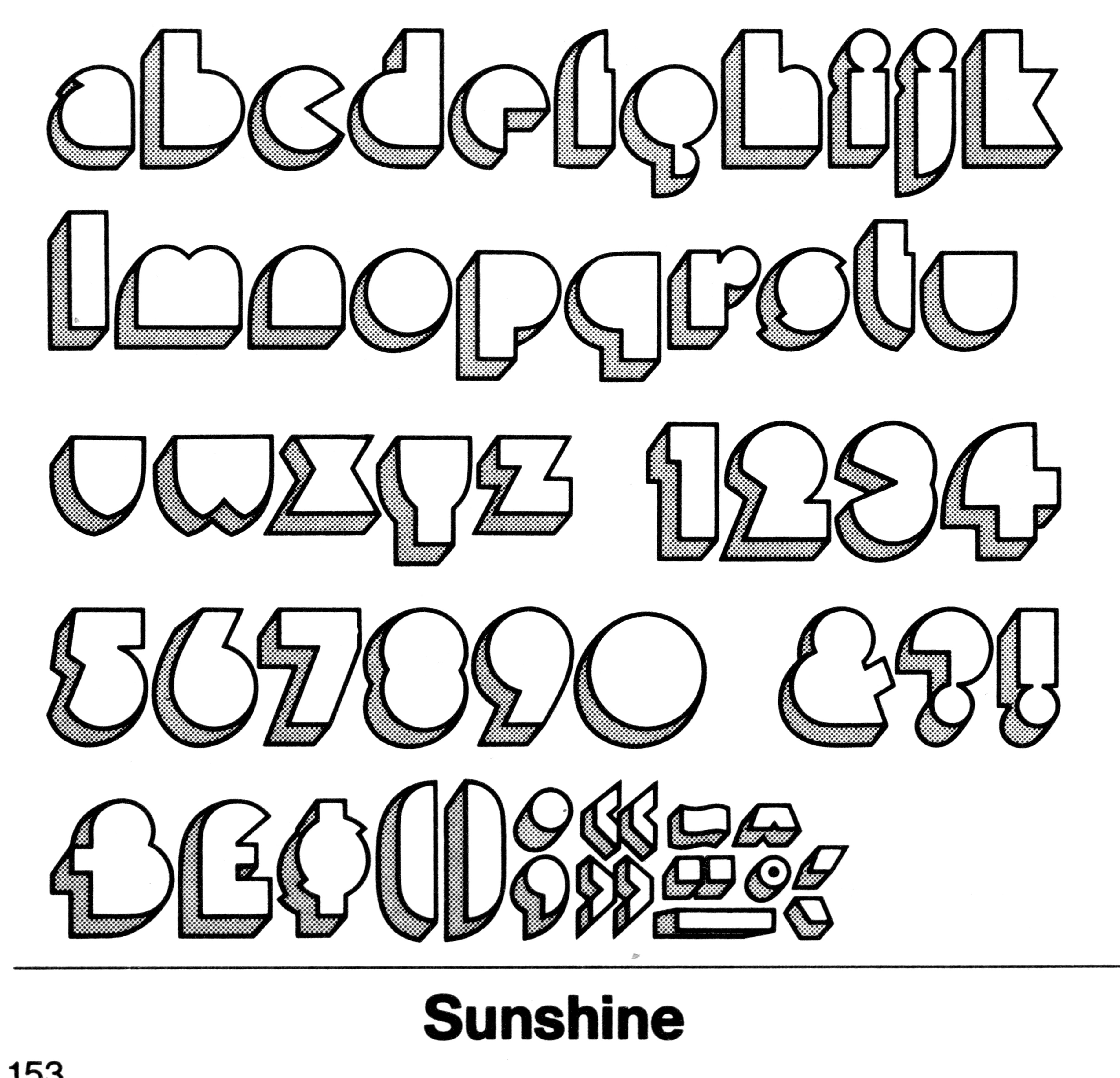 Some of my personal favorites from the era are Black Boton, designed by Albert Boton in 1970 and used on the album cover for The Guess Who. Another is the outline shadow style Sunshine designed for Letraset in 1971.