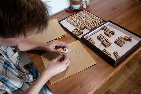 When setting up my file for cutting, I spaced everything as tight as possible to maximize the amount of letters, while still allowing the bit to pass between them. I bought the raw lumber and cut and surfaced it down to the 0.918 inches so it would match the standard height for press. After I had it machined, I took it into the wood shop and cut the letters apart on the bandsaw. After some light sanding to get rid of the burrs, my type was ready to finish with a couple coats of Bullseye Shellac and some light sanding.