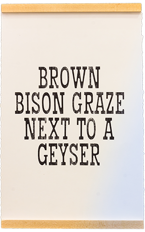 For the maiden print of Mill I wanted to print a series of posters that connected with each of the parks that I visited. I was limited to the letters that I had cut. So it became a puzzle, what was the most words I could write, that would make sense that still related to and reminded me of the time I'd spent in each park? The posters were designed to be paired with my series of screenprints you can read about below. They took on a minimal and poetic quality reminiscent of an incomplete park themed pangram.