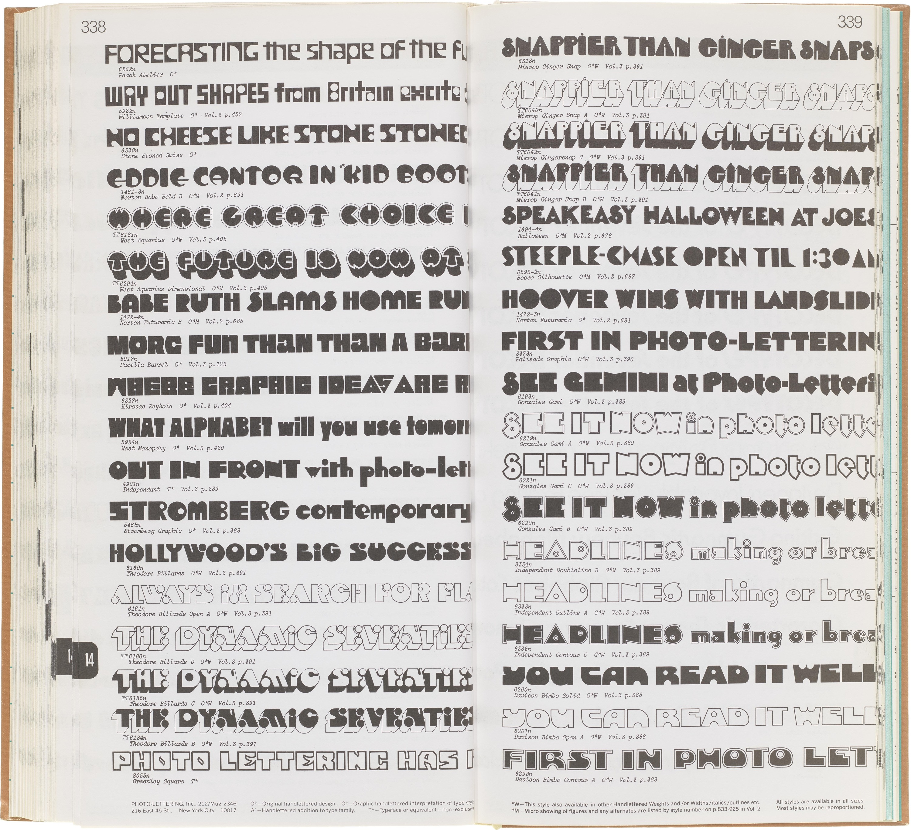 While Babyteeth is probably the most well known version of this style, it was not the first and definitely not the only iteration of this blocky, counterless typographic style. As I was looking through Photo-Lettering's One Line Manual of Styles I found a handful of styles that all play with this same idea.