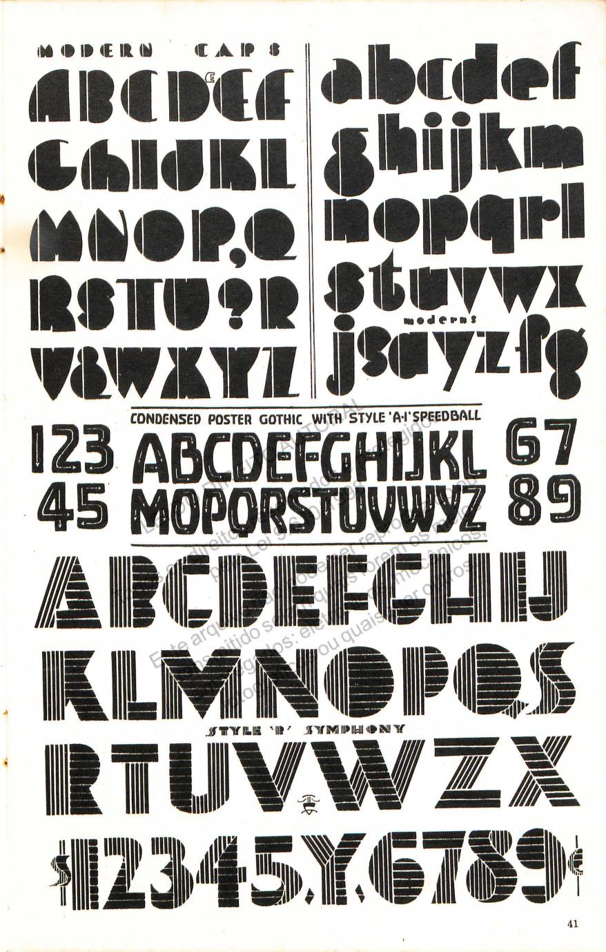 Seeing so many examples and styles I started to hunt for the OG, or root of the style. I remember stumbling into this plaque for the Golden Gate Bridge years ago. While not the same the blocky almost. Invisible counters could definitely be a cousin in terms of concept. The bridge was finished 1937. In a few lettering manuals, also from the 1930’s, I found these two examples.The first “Modern Lettering” the second example titled “Modern Caps” from the Speedball textbook.
