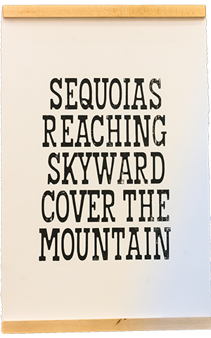 For the maiden print of Mill I wanted to print a series of posters that connected with each of the parks that I visited. I was limited to the letters that I had cut. So it became a puzzle, what was the most words I could write, that would make sense that still related to and reminded me of the time I'd spent in each park? The posters were designed to be paired with my series of screenprints you can read about below. They took on a minimal and poetic quality reminiscent of an incomplete park themed pangram.