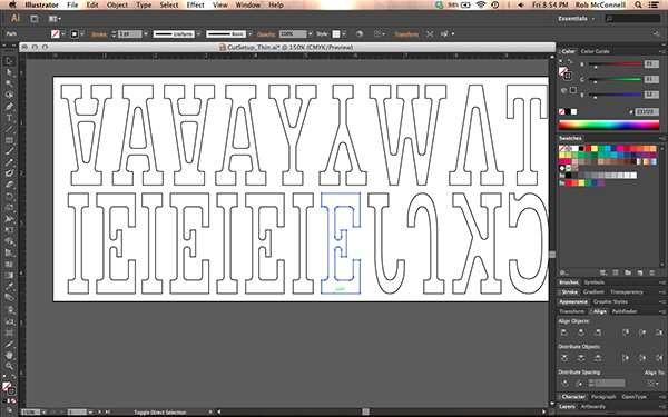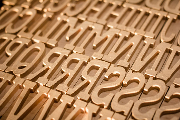 When setting up my file for cutting, I spaced everything as tight as possible to maximize the amount of letters, while still allowing the bit to pass between them. I bought the raw lumber and cut and surfaced it down to the 0.918 inches so it would match the standard height for press. After I had it machined, I took it into the wood shop and cut the letters apart on the bandsaw. After some light sanding to get rid of the burrs, my type was ready to finish with a couple coats of Bullseye Shellac and some light sanding.